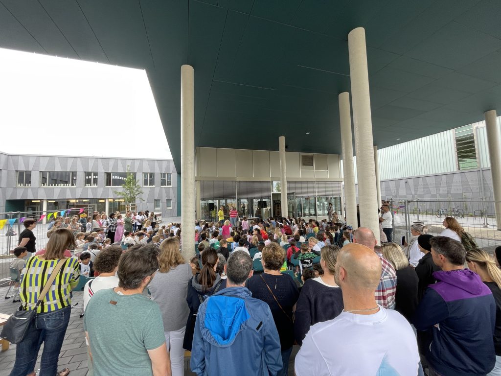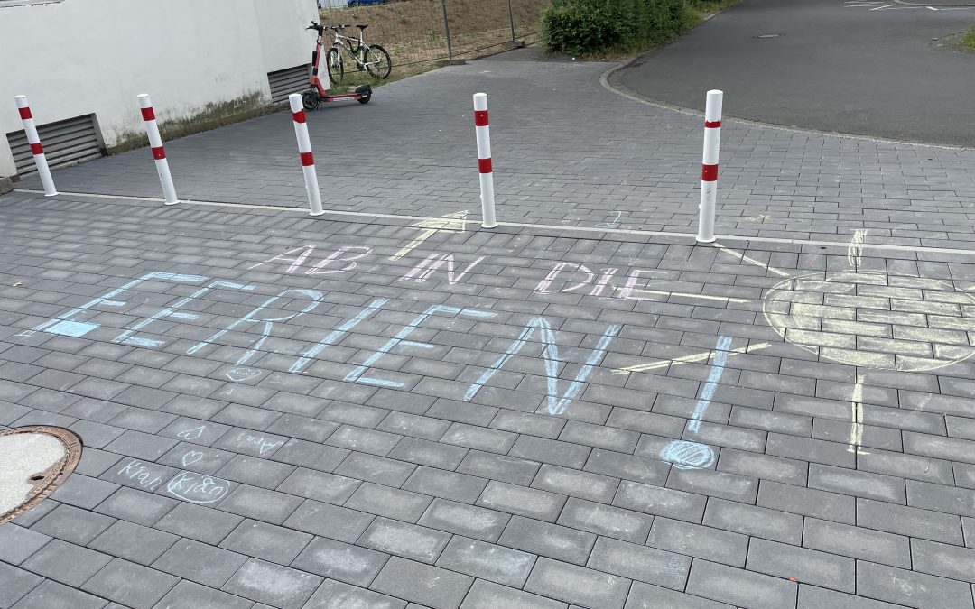 Am letzten Schultag vor den Sommerferien verabschiedeten wir unsere Viertklässlerinnen und Viertklässler. Die Klassen 4 gestalteten eine kleine Aufführung und sangen ein Lied für ihre Klassenlehrerinnen, Frau Dankert und Frau Teves. Anschließend bildeten alle Kinder der Schule das traditionelle Spalier, durch das die Viertklässler feierlich hinausgingen. Ein aufregendes Schuljahr geht zuende und die Ferien können beginnen!